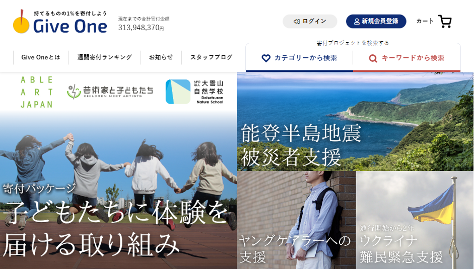 Give Oneは、公益財団法人パブリックリソース財団が運営する寄付プラットフォームで、NPOや公益法人を支援するための信頼性の高いサービスです。